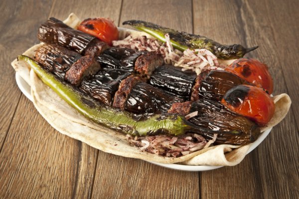 Описание: ОВОЩНОЙ ШАШЛЫК С САЛОМ. 300 г курдючного жира6 баклажановСоль, кумин, перецШаг 1. Баклажаны надрезатьвдоль. Натереть солью внутри.Оставить на 10 минут.Шаг 2. Нарезатьподмороженное сало тонкимипластинами.Шаг 3. Растолочь в ступкеперец и кумин, обвалять всмеси кусочки сала.Шаг 4. Начинить саломбаклажаны, насадить нашампур.Шаг 5. Жарить над углями,часто переворачивая, домягкости. Подавать с мясом илавашом.