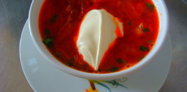 Описание: УКРАИНСКИЙ БОРЩ. Картофель - 5 шт;Морковь - 2 шт;Свекла - 2 шт;Лук - 1 шт;Капуста - 0,5 кочана;Говядина на косточке - 600гр;Томатная паста - 5 ст.л;Чеснок;Зелень;Сметана;Соль;Растительное масло;Сало.Как известно, путь к сердцумужчины лежит через егожелудок. Ни один настоящиймужчина не сможет устоятьперед тарелочкой сароматным, наваристымборщом. А это значит, чтокаждой хозяйке придется назаметку наш рецептукраинского борща сговядиной.Еще с 14-15 веков борщизвестен и популярен средиюжных народов, в основномУкраины. Издавна этот супбыло принято варить навесенние праздники, онпридавал сил, был сытным инастраивал людей на земляныеработы. Считается, что первыйборщ был сварен казаками вовремя взятия Азовскойкрепости.В настоящее время борщлюбим в семьях разных страни национальностей, у каждойхозяйки свои собственныехитрости приготовления.1. Для начала, намнеобходимо сваритьбульон. Так как борщ мыготовим из говядины,помоем мясо, зальемхолодной водой ипоставим вариться околочаса. Не солим и недобавляем специй, чтобысохранить сочность мяса.Готовность можнопроверить легко проткнувкусок и увидевпрозрачный сок.Собиравшуюся пенуповерх бульонанеобходимо будетвовремя снимать спомощью столовойложки. Для приготовлениясупа лучше взять мясо накосточке, чтобы бульонбыл более наваристым иполезным;2. Пока варится бульон,подготовим овощи.Очистим картофель,морковь, лук и свеклу.Подчеркиваем, что воригинальном рецептеукраинского борщасвекла также как и другиеовощи, должна бытьсырой. Итак, мясосварилось, шумовкойвыложим его наотдельное блюдо,подсолим и накроемкрышкой. В кипящийбульон добавляемрезанный кубикамикартофель, бульон солим;3. Капусту шинкуем, мнемруками, чтобы она пустиласок, солим и перчим. Лукмелко режем, морковь исвеклу натираем накрупной терке. Капустуотправляем к готовомукартофелю, остальныеовощи тушим наотдельной сковороде,добавив томатную пасту инемного бульона. Чтобысвекла сохранила свойнасыщенный цвет и вготовом блюде, притушении необходимосбрызнуть ее лимоннымсоком или присыпатьлимонной кислотой;4. Помещаем зажарку кбульону. Сваренное мясоможно поделить нанебольшие куски и вконце добавить вкастрюлю. Даем борщупокипеть еще минут 5.Далее, настоящаятонкость приготовленияукраинского борща — вступке разминаемнебольшой кусочекстарого сала или шпикавместе с зубчикамичеснока и заправляемэтой смесью борщ всамом конце, когда ужевыключили плиту.Некоторые любят борщ сошкварками, тогданеобходимо будетнебольшие кусочки салаобжарить не маленькомогне до зажаривания.После выключения плитыдаем борщу настоятьсянекоторое время;Готовое ароматное блюдоможно заправить зеленью исметаной, подаватьпорционно, можно спампушками. Приятногоаппетита!