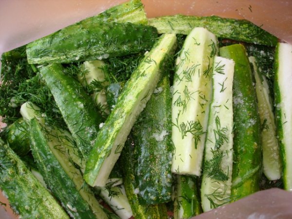 Описание: МАЛОСОЛЬНЫЕ ЧУДО-ОГУРЧИКИ!1 кг свежих огурцов 4 зуб. чеснока 2 ч.л. уксуса 2 ст.л. соли укроп - небольшой пучок. все ингредиенты указаны на глаз, не кладите все сразу, а пробуйте сначала на свой вкус. Приготовление:1. Итак, для начала хорошенько вымоем огурцы и разрежим их на четвертинки. 2. Уложим в глубокий контейнер(тарелку). 3. Затем пересыпаем солью, добавляем уксус, нарезанный укроп и пропущенный через пресс чеснок. Этой смесью натираем огурцы оставляем в холодильнике на 2-3 часа. 4. ВСЕ! Ароматные, хрустящие огурчики готовы! Подаем к кшашлыку, молодой картошечке, да и к любым другим блюдам