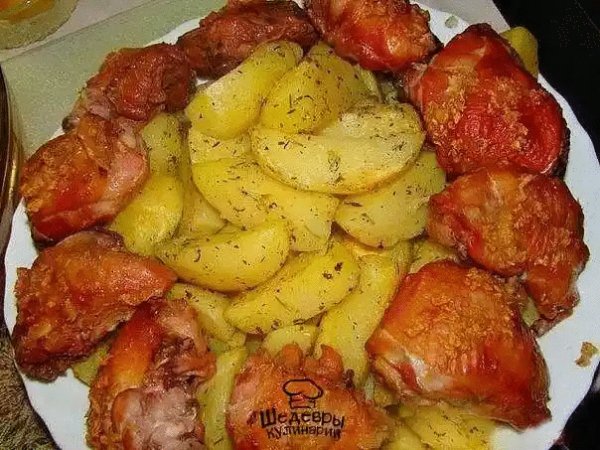 Описание: ИНГРЕДИЕНТЫ: куриные части 1 ст. л. сахара 1 ст. л. соли 1 ст. горячей воды 2-3 зубчика чеснокаПРИГОТОВЛЕНИЕ:1. Куриные части промыть и уложить на сухой противень.2. Смешать сахар и соль в маленькой кастрюльке. Нагревать на сильном огне до тех пор пока сахар не расплавится. Как только смесь потемнеет снять с огня, залить стаканом горячей воды (когда вы зальете "карамель" водой она затвердеет) и поставив на медленный огонь размешивать до полного растворения.3. Залить курицу получившимся соусом, сверху на курицу положить мелко нарезанный или пропущенный через пресс чеснок.4. Жарить в духовке до румяной корочки при температуре 200-230 гр.На запах сбегутся все соседи!Курочка не получается сладковатой - всегда тонко-ароматный исключительно нежный куриный вкус без малейшей сладости.Приятного аппетита!