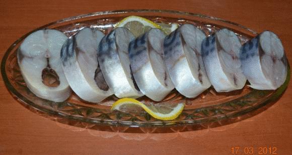 Описание: ИнгредиентыВода- 1 лСахар- 2 столовые ложкиУксус 9%- 2 столовые ложкиЛавровый лист- 3 штукиПерец черный горошек- 3 штукиПерец душистый- 2 штукиПриготовлениеБерем свеже мороженную скумбрию, моем под проточной водой.Режем кусочками.Приготовим 1 литр воды и специи.Добавляем в воду соль, сахар, лавровый лит, перец горошком.Ставим кипятить.Пусть маринад пару минут покипит.Затем отставляем с огня остывать. В остывший маринад добавляем уксус.Кусочки нарезанной скумбрии укладываем в стеклянную банку и заливаем маринадом.Такая рыба стоит в маринаде сутки при комнатной температуре. Перед тем как убрать рыбу в холодильник, её нужно обязательно попробовать, если для вас она покажется мало солённая, пусть маринуется ещё. Солю скумбрию сам, на праздники, на день рожденья и в обычные будни, когда хочется соленой рыбки. На праздники солю по 2-3 скумбрии. Теперь и вы сможете засолить скумбрию в домашних условиях. Подавать скумбрию можно с нарезанными полукольцами лука или лимона.Приятного аппетита!