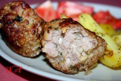 Описание: Сочные_сербские_котлетки.Уштипцы - сочные сербские котлеткиСочные котлетки с добавлением бекона и минералки,пробуем!Ингредиенты:500 г мясного фарша100 г сырокопченого бекона100 г сыра1 луковица1/2 стакана минералки1/2 чайной ложки содыСоль, молотый черный перец, острый красный перец, паприка, чеснок, зелень по вкусyК фаршу добавить мелко нарезанную грудинку и лук:Добавить кубики сыра, измельченный чеснок, зелень. Всыпать соду, влить минералку. Посолить, поперчить и тщательно вымесить:Мокрыми руками сформовать небольшие котлетки и выложить на сковороду с разогретым маслом:Зарумянить с одной стороны, перевернуть и довести под крышкой до готовностиПриятного аппетита!