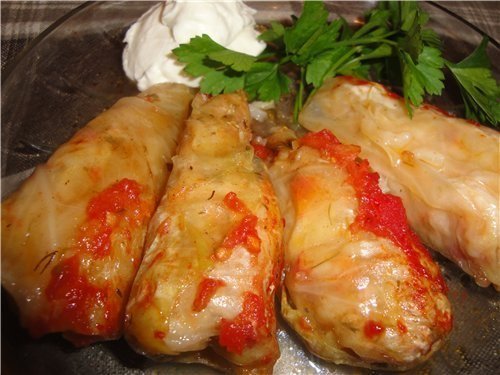 Описание: Секрет приготовления вкусных голубцовХотите разнообразить свое домашнее меню? Приготовьте голубцы – блюдо вкусное, полезное и не слишком трудоемкое. Главный секрет здесь – превратить жесткий и ломкий лист капусты в мягкий и эластичный, который сначала легко свернуть конвертом, с той или иной начинкой, а потом разрезать его без усилия ножом на тарелке. Дадим пару проверенных рецептов.Но сначала раскроем упомянутый секрет. От того, как вы приготовите капустные листья, будет зависеть и вкус, и внешний вид голубцов. Высший пилотаж приготовления – голубцы с полупрозрачными листьями, через которые просматривается начинка. Правильно приготовить листья для голубцов несложно. У капустного кочана со стороны кочерыжки срезают примерно треть. Оставшуюся большую его часть кладут в кастрюлю срезом вверх, заливают кипятком, закрывают крышкой и выдерживают до полного остывания. Затем, вынув из воды, кочан аккуратно разбирают на отдельные листья, в которые в дальнейшем и заворачивают фарш. Здесь тоже есть свои правила. На внутреннюю сторону капустного листа укладывают горстку фарша, прикрывают его нижней (черешковой) частью листа, на нее подвертывают с двух сторон боковые части и оборачивают верхней. Сформированный таким образом классический голубец из капустного листа имеет вид объемного конвертика, хотя можно изготовить голубцы и в виде трубочек.Как правильно готовить голубцы? Практический совет опытной хозяйки: лук для фарша не пропускайте через мясорубку, как все делают при готовке котлет, а мелко нарубите его. В таком виде в голубцах он будет своего рода разрыхлителем начинки.Рецепт голубцов с мясомДля приготовления голубцов можно брать любое мясо – говядину, свинину, баранину. Вкуснее всего получаются голубцы с начинкой из смеси говядины и свинины в равных долях. Для приготовления фарша мясо промойте, нарежьте кусочками и пропустите через мясорубку. Вымытый рис подержите в воде 1-2 часа. Лук и морковь очистите, промойте, мелко нашинкуйте и спассеруйте на растительном масле. Соедините пассерованные овощи с фаршем, рисом, посолите, поперчите и тщательно перемешайте.Уложите фарш на капустные листья, сформируйте конвертики, поместите их в кастрюлю, залейте крутым кипятком, добавьте перец горошком, лавровый лист, соль и тушите на медленном огне до готовности риса.