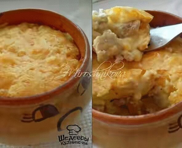 Описание: ИНГРЕДИЕНТЫ: 500 г куриного филе 300 г шампиньонов 200 г лука 200 г сыра (твердого) 300 г сливок (15-25%) или сметаны 2 столовые ложки муки соль перец растительное маслоПРИГОТОВЛЕНИЕ:Лук мелко порезать.Грибы почистить,мелко нарезать.Филе нарезать полосочками или кубиками,как нравится.Обжарить лук на растительном масле.Добавить грибы,жарить до тех пор,пока не выкипит вся жидкость. (10-15 минут). Добавить курицу,посолить поперчить. Перемешать,обжарить до полу готовности. Снять с огня.На сухой сковороде обжарить муку. Добавить сливки,посолить,поперчить,перемешать,довести до кипения.Добавить сливки в курино-грибную смесь. Перемешать.Сыр натереть на крупной терке.Выложить массу в горшочки.Посыпать сыром. Поставить в духовку на 30-35 минут. Крышечками не закрывать.Приятного аппетита!