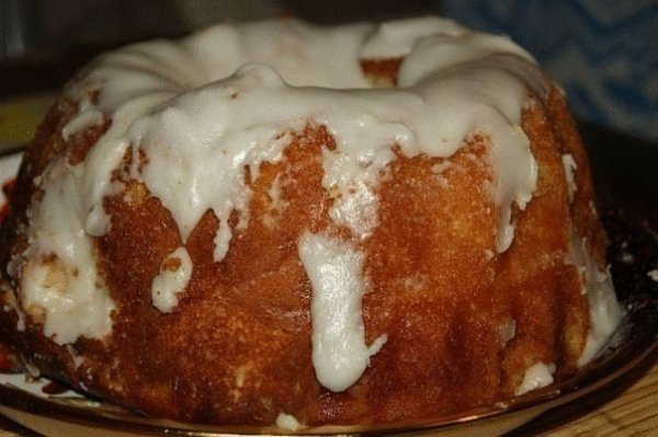 Описание: Ромовая БабаИнгредиенты:-200 г теплого молока-3 стакана муки-4 яйца-6 ст ложек сахара,щепотку соли-120 г сливочного масла или маргарина (растопить)-1 пакетик сухих дрожжей-1 пакетик разрыхлителя-1 пакетик ванильного сахараПриготовление:Взбить яйца с сахаром, добавить соль, ванильный сахар, молоко. Просеять муку, на нее насыпать разрыхлитель и дрожжи, слегка перемешать и добавить к яйцам, туда же добавить сливочное масло, перемешать. Поставить подниматься на полтора часа в теплое место. Выложить в форму и еще на час оставить. Духовку разогреть до 180 градусов, печь 25 минут.Сварить заливку из 200 г воды и 200 г сахара до растворения сахара и добавить ром или коньяк (100 г) можно и больше)Вынуть Бабу проколоть всю зубочисткой и полить не спеша ромовым сиропчиком. Чуть позже ей на макушку глазурь:200 г сахарной пудры вымешать с 2-3 ст ложками воды.Приятного аппетита!