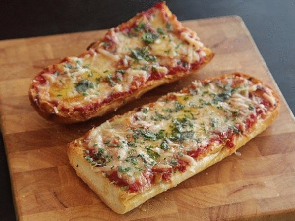 Описание: Ингредиенты:Багет 1 шт. Томатный соус по вкусуЛюбые начинки, которые есть в холодильнике по вкусуТертый сыр по вкусуПриготовление:1. Разогреваем духовку до 250 C. Хлеб разрезаем пополам вдоль. Смазываем томатным соусом (пастой), выкладываем начинку. Можно: зеленый болгарский перец, колбаса, оливки на одной стороне и сосиски и ананас на другой стороне. Посыпаем все тертым сыром.Ставим в духовку на 5-6 мин (пока сыр не расплавится).Приятного аппетита!