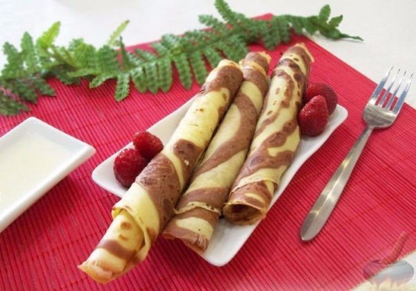 Описание: 3 лучших рецептаблинчиков на утро!1. Блинчики "Зебра"Ингредиенты:Мука — 1,5-2 стаканаМолоко — 0,5 литрамолокаЯйцо — 3-4 шт.Сахар — 1 ст. л.Растительное масло — 1ст. л.СольПриготовление:Смешать ингредиентыдля блинного теста.Отлить немного теста (вмерный стакан),добавить порошоккакао и немного сахара.Как только белое тестовылили на сковороду,сверху выливаем через"носик" темное тестолюбым узором,переворачиваем блин иобжариваем. Начинкаможет быть любой, повашему желанию.2. Заварные блины намолокеПриготовление:1. Пол литра молока2. 2 яйца взбитьвенчиком3. Добавить 1 ч.л.разрыхлителя и мукистолько, чтобыполучилось тесто, какна оладьи4. Затем вылить 1стакан крутого кипятка,перемешать.5. Добавить 7 ст.л.растительного масла.Тесто готово!6. Жарить как обычно,на раскаленнойсковороде, с двухсторон.3. Шоколадныеблинчики на молокеИнгредиенты:Сахар — 2 ст. л.Молоко— 3 стаканаМука — 300 гКакао — 2 ст. л.Яйца — 3 шт.Растительное масло —2-3 ст. л.Соль — 1 щепоткаПриготовление:1. Яйца взбить с солью исахаром. Готовьте тестолучше в блендере:получится быстро икачественно, тестооднородное, безкомков.2. Затем влить вполученную смесьстакан молока и сновавзбить. Всыпать муку,взбить, чтобы неосталось комков.Продолжая взбивать,постепенно влить втесто оставшеесямолоко. У вас должнополучиться достаточножидкое тесто.3. Теперь можно печьблинчики. Тесто должнобыть разных цветов.Поэтому треть тестаперелить в отдельнуюемкость — это длясоздания узоров длябудущих блинов. Воставшуюся частьдобавить какао и оченьхорошо перемешать,чтобы тесто сталооднородным, безкомочков.4. Хорошо разогретьсковороду, влитьнемного масла,равномернораспределить насковороде и подогреть.5. Влить немного теста,буквально ½ черпака ираспределить по всейсковороде. Немногоподпечь. Чайнойложечкой черпатьнемного теста ирисовать произвольныеузоры на блинчиках.Затем перевернуть блини поджарить с другойстороны.6. Снять с огня, свернутьих стороной с узорамивверх и подавать втеплом виде, хотя ихолодные блинчикитоже чрезвычайнохороши.7. При жаркешоколадныхблинчиков на молокерастительное маслоследует наливать лишьединожды, во времяжарки первого блина.После масло можно недобавлять, блины неприлипнут.___________________________________Готовьте с любовью!Живите вкусно!