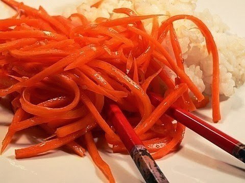 Описание: Морковь «по-корейски»Для приготовления вампотребуются:морковь — 1 кгсахар - 1 ст. ложка9%-ный уксус - 2 ст.ложкисоль — 1 ч. ложка безверхарастительное масло - 50гкрасный жгучий перец,лучше крупного помолаСпособ приготовления:Морковь почистить,нарезать, используяспециальноеприспособление,которое режет морковьна длинные тонкиебрусочки. Ну уж еслитакого нет, тогданатереть морковь накрупной терке (это ужене «корейский»вариант).После того, как морковьнарезана, добавитьсоль, сахарный песок иуксус. Этосоставляющиемаринада – именно этипродукты позволяютсалату долго храниться,и придают основнойвкус.Перемешать, немногорастирая рукамиморковь с маринадом.Отставить салат всторону на 20-30 минут– за это время морковьдолжна дать сок.Затем добавить специи.Секрет корейской кухни— красный молотыйперец обжарить 2-3минуты в масле. Приэтом перец становитсяменее острым иприобретает особый«корейский» вкус.Итак основнаяприправа к моркови —обжаренный красныйжгучий перец.Добавляем его оченьосторожно.Помимо перца,основываясь на своихвкусовыхпредпочтениях, можнодобавить несколькозернышек кориандра(хотя такая приправа несвойственна корейскойкухне).Но лучше всегообжарить на сухойсковороде кунжутноесемя до светло-коричневого цвета. Иливлить несколько капелькунжутного масла.Затем ещё раз хорошоперемешать салат. И,наконец, добавитьмасло.Масло для салатапринято нагревать довысокой температуры,но не до кипения. Влитьмасло на сухуюсковороду, хорошопрогреть и сразу жевылить в салат.Перемешать.Если хотите добавить всалат измельченныйчеснок – делайте это всамом конце, после тогокак масло в салатеостынет. Иначе чеснокстанет ярко зеленым ииспортит весь внешнийвид моркови.Готовый салат оставитьна ночь при комнатнойтемпературе, а затемубрать в холодильник.Хранить морковь «по-корейски» можно додвух недель в основномотделе холодильника,желательно в емкости сплотной крышкой.
