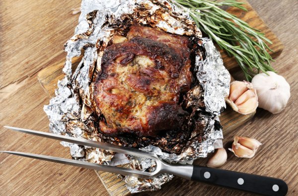 Описание: 8 хитростей запекания в фольгеРулон фольги один из тех аксессуаров, без которых не обходится ни одна кухня. В фольге запекают все, что угодно: мясо, рыбу, птицу, овощи. Благодаря фольге вы сможете разнообразить не только домашний ужин, но и пикник, поездку на дачу, рыбалку или охоту нет ничего вкуснее только что пойманной рыбы или птицы, тут же запеченной в углях походного костра или на гриле. Упаковку из фольги можно использовать вместо посуды, которую не нужно мыть. Пища, приготовленная в фольге, по вкусу напоминает тушеную. Благодаря прослойке из фольги мясо не контактирует с огнем и поэтому не обгорает, а пар и сок, выделяющиеся в процессе готовки, не пропадают зря, а впитываются обратно благодаря герметичной упаковке. Но мясо, приготовленное в фольге, не будет вкусным и сочным, если не применить к нему несколько несложных хитростей. Как долго готовить в фольге? Среднее время готовки мяса в фольге 15-30 минут при температуре в 190-200 градусов Цельсия. При уменьшении температуры время готовки увеличивается, однако уменьшается риск того, что вы передержите мясо, и оно станет слишком сухим. Что запекать? Для запекания старайтесь брать мясо без костей. В случае, если это невозможно, проследите за тем, чтобы кости не выпирали, иначе фольга порвется. Речную рыбу можно не потрошить. Выбор фольги Для запекания в углях лучше подходит толстая фольга так будет меньше риска, что она проткнется. В крайнем случае можно взять обычную фольгу, сложенную в два-три слоя. Так же при заворачивании мяса уделите особое внимание герметичности, чтобы угли и сажа не попали внутрь, а сок не вытек наружу. Порядок закладки ингредиентов Для того, чтобы мясо лучше пропеклось и пропиталось ароматом специй и овощей, нанесите на его поверхность неглубокие надрезы ножом крест-накрест. Кладите сначала овощи и кольца лука, а сверху мясо, натертое приправами и чесноком. Так мясо не пригорит и максимально пропитается паром от овощей. Как правильно завернуть в фольгу? Заворачивая мясо, внимательно следите, чтобы фольга была матовой стороной наружу, а блестящей внутрь. Сложите лист фольги пополам, положите овощи и мясо внутрь как можно ближе к сгибу. Заверните край, параллельный сгибу, затем заверните края по боковым сторонам. Обожмите получившийся пакет. Подобная упаковка отлично сигнализирует о готовности мяса она надувается, а сгибы чернеют. С воздухом и без Запекая мясо или рыбу, старайтесь, чтобы фольга плотно прилегала к поверхности продукта при упаковке. При запекании овощей, наоборот, оставляйте немного воздуха таким образом, овощи хорошо пропарятся, но не поджарятся. Не забудьте про корочку Чтобы на мясе получилась румяная корочка, разверните фольгу и запекайте еще 5-10 минут. Разворачивая фольгу, будьте осторожны и не обожгитесь паром, который выйдет наружу, как только будет нарушена герметичность.