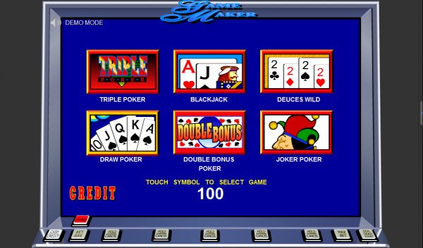 Описание: Среди многочисленных игровых автоматов , на мой взгляд, этот получился самый удачный, так как сочетает в себе следующие игры: Triple Poker, BlackJack, Deuces Wild, Draw Poker, Double Bonus Poker и Joker Poker.Выбирайте ту игру в которую хотите поиграть , делайте ставки инаслаждайтесь всеми шестью играми этого игрового автомата . Приятной игры в Game Maker.