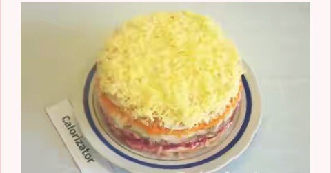 Описание: Приготовить овощи для торта: картофель, морковь, свеклу, яйца отварить.Натереть на крупной тёрке один солёный огурец и выложить на дно блюда.Отварной картофель (3 шт.) очистить и натереть на крупной тёрке. Выложить на огурец и смазать майонезом.Одну варёную морковь, почистить, натереть на тёрке, выложить на блюдо.Лук очистить, мелко порезать и выложить половину луковицы на морковь.Два яйца порубить ножом и выложить сверху на лук, яйца смазать майонезом.Одно яблоко почистить, натереть на крупной тёрке. Выложить ровным слоем.Варёную свеклу почистить, натереть на крупной тёрке, выложить самым широким слоем.Сверху свеклу смазать майонезом. Повторить все слои, начиная с первого: огурец, картофель (3 шт.), майонез, морковь, лук, яйца, майонез, яблоко.Верхний слой яблока смазать майонезом. Сыр потереть на мелкой тёрке и посыпать сверху овощной торт.Поставить торт на 10-12 часов в холодильник.Овощной торт лучше делать вечером и оставить на ночь в холодильнике.Ингредиенты рецепта Овощной торт:Картофель - 6 шт.Морковь - 2 шт.Репчатый лук - 1 шт.Свекла - 1 шт.Яйца - 4 шт.Солёные огурцы - 2 шт.Яблоки - 2 шт.Майонез - 200 гр.Сыр - 100 гр.