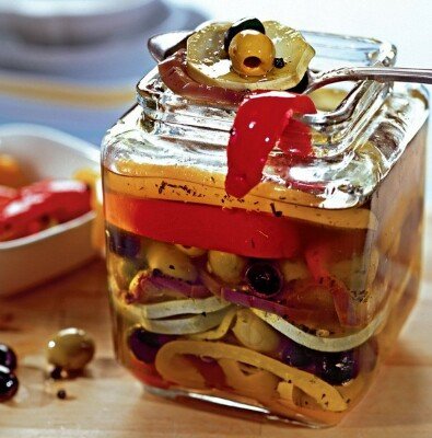 Описание: Маринованные овощи по-итальянскиИнгредиенты:Перец черный горошком — 8 шт.Масло растительное — 300 млПерец красный сладкий — 1 шт.Оливки — 100 гСоль — 2 ст. л.Перец жёлтый сладкий — 1 шт.Маслины — 100 гСушеный орегано — 1 ч. л.Баклажан небольшого размера — 1 шт.Кабачок — 1 шт.Тимьян — 1 веточкаУксус винный белый — 200 млПриготовление: 1. Все овощи вымыть. Баклажан и кабачок нарезать кружками толщиной примерно 0,5 см. Перцы разрезать пополам, удалить сердцевину и нарезать продольными ломтиками. Поместить баклажан, кабачок и перцы в отдельные миски, присыпать солью и оставить на 1 час.2. Промыть овощи холодной водой. Вскипятить уксус с 200 мл воды.3. Положить баклажаны и готовить 3 минуты. Шумовкой переложить на салфетки.4. Повторить ту же операцию с кабачком и перцами. Дать овощам обсохнуть в течение 30 минут.5. Уложить овощи слоями в стерилизованную банку, перемежая их оливками и маслинами. Сверху положить веточку тимьяна.6. Растительное масло с горошинами черного перца довести на небольшом огне до кипения. Добавить орегано, перемешать. Залить горячим маслом овощи. Банку накрыть и дать остыть. Как только овощи остынут до комнатной температуры, герметично закрыть банку и поставить на хранение в прохладное место.