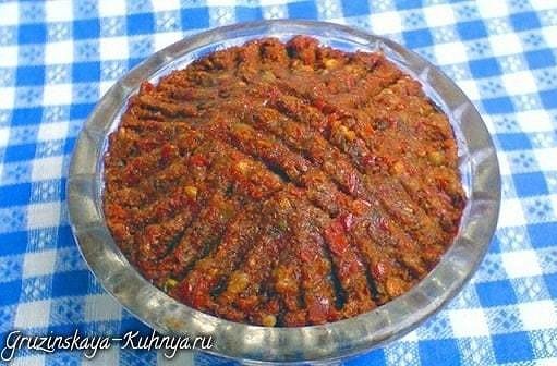 Описание: СУХАЯ АДЖИКА ПО-ГРУЗИНСКИСухая аджика по-грузински. Рецепт приготовления сухой аджики по данному рецепту — очень простой и легкий, аджика получается очень вкусная, острая и пряная. Данную сухую аджику можно подавать к столу вместе с жареной картошкой, макаронами, рыбой, жареным мясом и курицей.А еще… попробуйте взять ломтик хлеба, смазать его сливочным маслом, а сверху смазать небольшим количеством сухой грузинской аджики. Вам понравится, не сомневаюсь! Попробуйте!Ингредиенты:чеснок — 500 грамм,красный стручковый перец — 500 грамм,сладкий красный болгарский перец — 500 грамм,соль — 1 столовая ложка.Рецепт приготовленияКрасный стручковый горький перец, чеснок, красный болгарский перец — пропустить через мясорубку (перемолоть перцы вместе с семечками, удалив только хвостики).Посолить. Перемешать и разложить по маленьким баночкам. Хранить в холодильнике. Сухая аджика в холоде может простоять в холодильнике достаточно долго, до одного года.