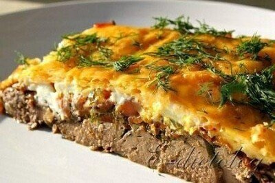 Описание: Куриная печень с сыром и овощамиКуриная печень с сыром и овощами – полезное и нежное деликатесное блюдо. Встречается в кухнях разных стран.на 100 грамм – 133,06 ккал. белки – 14,19 жиры – 7,25 углеводы – 2,91Ингредиенты:— куриная печень – 700 гр.— лук – 2 шт.— морковка – 2 шт.— чеснок – 2 зубчика— сметана нежирная – 50 гр.— сыр – 100 гр.— оливковое масло – 2 ст.л.— черный молотый перец и соль – по вкусуПриготовлениеТщательно мою морковь и натираю на крупной терке.Чищу лук и нарезаю на мелкие кубики.Измельчаю чеснокРазогреваю сковороду, лью на нее оливковое масло и до прозрачности обжариваю лук, добавляю чеснок, и через 1 минуту добавляю морковь, солю, перчу и обжариваю до легкого золотистого цвета. По вкусу можно добавить зелень и сухие травы.Печень очищаю от пленки, промываю, и сушу с помощью бумажных полотенец. Нарезаю. Перчу и солю по вкусу.На терке натираю твердый сыр.Фольгой застилаю дно формы для запекания, смазываю немного оливковым маслом и выкладываю куриную печень, сверху зажарку, затем смазываю сметаной и притрушиваю тертым сыром.Запекаю куриную печень под овощами при температуре 180С, на протяжении 20-30 минут.