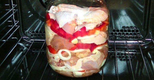 Описание: ОБЕД В БАНКЕ.предлагаем блюдо для всей семьи обед в трехлитровой банке.Сейчас это настоящий кулинарный тренд. Во многих западных странах так готовит каждая вторая хозяйка. Представьте, вы обедаете на работе, разглядывая гречку и салат в пластиковом лоточке, а ваш коллега достает банку с ярким, сочным и ароматным мясом внутри. Тут же захочется узнать, что это и как его приготовить. Делимся идеей.ИнгредиентыКуриный окорок 1 кгКартофель 10 шт.Лук 1 шт.Морковь 1 шт.Болгарский перец 1 шт.Помидор 2 шт.Лавровый лист 2 шт.Перец душистый 3 шт.Соль по вкусуЧерный перец (молотый) по вкусуПриготовлениеНарежьте окорочка порционными кусочками. Посолите и поперчите.Очистите лук, морковь, картофель и болгарский перец. Вместе с томатами нарежьте все овощи, но не очень мелко. Отдельно посолите картофель.Сложите всё в чистую сухую трехлитровую банку слоями. Добавьте душистый перец и лавровые листики.Накройте банку фольгой. Поставьте в холодную духовку. Только потом включите ее и выставьте температуру на 180 С. Готовьте 90 минут.Вот привыкли мы запекать на противне, в форме, горшочке и даже в казане. Я, например, как вижу красивую жаропрочную форму, всегда спешу купить ее. В кухонном шкафчике штук 6 самых разных. Кто бы мог подумать, что можно обойтись обычной трехлитровой банкой. Как вам такой вариант? Делитесь своими впечатлениями.Яна ПетлёванаПримечание: Можно порезать курицу и складывать в банку следующим образом - постные куски внизу, а более жирные - последними.