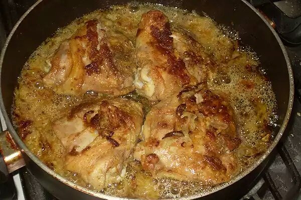 Описание: .Курочка по-особому.Курочка по-особому. Такая вкуснятина, что оторваться невозможноГотовится быстро. Съедается еще быстрее.Ваши мужчины будут очень довольны!Ингредиенты Курица (или ее части) 1 кг Лук репчатый среднего размера 3 шт Пиво светлое 1 стакан Специи (соль, перец, приправы для курицы) по вкусу Чеснок по вкусуРецепт приготовленияКурицу разрезать на порции (можно использовать куриные бедрышки).Затем посыпать приправами, посолить, поперчить и натереть толченым чесноком. Оставить на полчаса-час.Лук нарезать четверть-кольцами и обжарить на растительном масле, в сковороде, до золотистого цвета.Сдвинуть лук к краям сковороды, а в середину выложить куски курицы, обжарить их с обеих сторон по 6-7 минут.Затем нужно влить пиво и потушить курицу под крышкой еще минут 10-15.Подавать нашу курочку будем прямо в сковоaродке.Очень вкусно ее есть, обмакивая при этом хлеб в соус он просто бесподобен.Приятного аппетита!