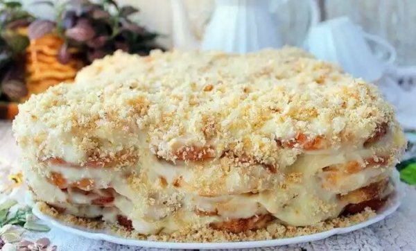 Описание: САМЫЙ ЛЕНИВЫЙ ТОРТ ИЗ ПЕЧЕНЬЯ УШКИСамый ленивый торт из печенья Ушки. Готовится без выпечки!В моей семье очень любят сладкое, но печь торты у меня не получается: не мое это.Поэтому стараюсь подбирать рецепты тортов без выпечки. Один из самых любимых ленивый торт а-ля Наполеон, который легко сделать из слоеного печенья ушки. Пропитанный нежным и ароматным кремом торт, по вкусу совершенно не отличается от классического варианта.Состав продуктов600 грамм готового печенья ушки;600 миллилитров молока жирностью 3,2%;три свежих куриных яйца;100 грамм сахарного песка;2 столовые ложки картофельного крахмала;2 столовые ложки пшеничной муки;пачка ванильного сахара;100 грамм сливочного масла.Пошаговый процесс приготовленияПредварительно нужно сварить заварной крем для торта.В глубокую миску вбиваем яйца, добавляем сахарный песок и ванильный сахар, немного взбиваем венчиком.В смесь добавляем пшеничную муку и картофельный крахмал, вливаем небольшой струйкой теплое молоко, не останавливая взбивание.Кастрюлю с кремом ставим на плиту, включаем самый маленький огонь и варим содержимое до загустения. Как только появятся первые пузыри, кладем кусочек сливочного масла комнатной температуры и перемешиваем.Снимаем кастрюлю с огня, накрываем крем пленкой (она должна с ним соприкасаться) и оставляем остывать. Затем уберем крем ненадолго в холодильник, чтобы он стал более густым.Форму застилаем бумагой для выпечки. Помните, чем уже форма, тем выше получится торт.Начинаем формировать торт из печенья. Печенье обмакиваем в крем, выкладываем их первым слоем в форму. Оставшиеся промежутки заполняем поломанными кусочками печенья. Заливаем весь слой кремом, разравниваем лопаткой.Повторяем таким способом все слои из печенья, пока не закончится крем.Немного печенья оставляем для украшения.Выложив последний слой, смазываем верх и бока торта заварным кремом.Посыпаем обильно крошкой оставшегося печенья и убираем в холодильник на ночь.Украсить тортик можно целым печеньем или посыпать тертым шоколадом.Нежный и ароматный торт подаем на стол, разрезав на порционные кусочки