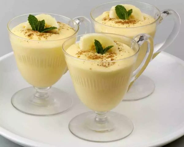 Описание: От такого десерта ваш ребенок будет в восторгеПобаловать детей можно вкусным пудингом с бананом. Малышам придется вкусу этот нежный шоколадно-банановый десерт. Вам потребуется: 200 мл молока1 банан1,5 ч. л. какао2 ч. л. крахмала40 гр. сахарного песка1 яйцо20 гр. сливочного масла2 ч. л. ванильного сахара.Способ приготовления:1. Смешайте в глубокой тарелке 170 мл молока, 30 г сахарного песка, яйцо, ванильный сахар и крахмал2. Тщательно взбейте смесь. В другой тарелке смешайте оставшиеся ингредиенты3. Вскипятите эту смесь в микроволновой печи или на слабом огне4. Влейте горячую смесь в холодную, перемешайте обе массы блендером или венчиком, чтобы не было комочков5. Перелейте массу в кастрюльку и поставьте на слабый огонь6. Разогрейте ее до образования пузырьков на поверхности, не забывайте непрерывно помешивать массу ложечкой7. Снимите смесь с плиты, добавьте сливочное масло и дождитесь охлаждения8. Измельчите банан с помощью терки или блендера в пюре9. Разделите полученную массу на две равных части в одну добавьте банан, а в другую шоколадный порошок. Тщательно перемешайте обе смеси10. Выложите банановую смесь в стеклянную посуду и поставьте на полчаса в холодильник. Когда масса немного застынет, выложите второй слой шоколадную смесь11. Поставьте смесь на 2-2,5 часа в холодное место или холодильник Перед тем, как угощать малышей, лакомство должно немного постоять в тепле и нагреться
