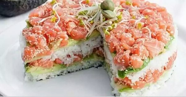 Описание: САЛАТ, ЧТО ОБОШЕЛ ОЛИВЬЕ И ДАЖЕ СУШИ!Салат Японские сушиЭтот салат подходит для любого праздника.Интересен этот рецепт тем, что ингредиенты схожи с теми, которые нужны для приготовления суши, и по вкусу салат напоминает именно их.Ингредиенты:Слабосолёная красная рыба (её можно купить, а можно засолить дома в соевом соусе) 300 гр.,рис 300 гр.,свежие огурцы 2 шт.,большая морковь 1 шт.,яйца 4 шт.,большая фиолетовая луковица,пучок зелёного лука,пучок укропа,васаби (Васаби, который также известен, как японский хрен или зеленая горчица, к столу подается в виде тертого корня или готовой пасты, которая имеет острыйобжигающий вкус, свойственный горчице, а не перцу, не обжигает язык, а отдается в носу, не оставляет запаха и быстро проходит. заранее смешайте порошок васаби с горячей водой),майонез.Приготовление:1.Смешайте майонез с васаби. Это будет заправка нашего салата, именно ей мы будем промазывать слои. Отварите рис таким же способом, как для суши. Это делается так: промыть рис, залить водой (на 1 часть риса полторы части воды), поставить на огонь, чтобы выкипела вода (это займет около 7 минут). Убавить огонь до минимума и варим ещё 15 минут. Затем снимаем с плиты и даём настояться около получаса. Морковь и яйца тоже надо отварить. Пока часть составляющих салата находится на плите, подготовим остальные продукты: нарежем небольшими кусочками рыбу, огурцы кубиками, мелко нашинкуем лук.2. Зелень также можно нарезать заранее. Отварную морковь и яйца натрите на тёрке. Смешайте яйца с зелёным луком и заправьте васаби-майонезной заправкой. А теперь укладывайте салат слоями, не забывая смазывать их смесью майонеза и васаби.3.1- слой рис, его необходимо промазать заправкой.2- слой рыба.3- слой укроп.4- слой фиолетовый лук.5- слой огурец, промажьте сверху майонезом с васаби.6- слой яйца с луком.7- слой морковь, ее тоже промазываем заправкой.4.Даём салату постоять в холодильнике около двух часов и подаём на стол.Приятного аппетита!