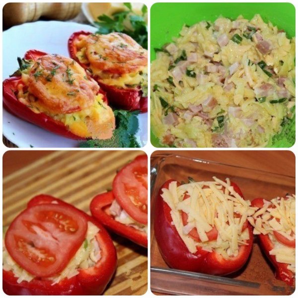 Описание: Фаршированный перец запечённый в духовке Ингредиенты: перец болгарский - 2 шт.; грудинка варено-копченая (можно заменить колбасой) - 150-200 г; картофель (среднего размера) - 2 шт.; помидор - 1 шт.; сыр твердых сортов - 200 г; яйцо - 1 шт.; сливки - 10% - 150 мл; соль, перец, любимые приправы - по вкусу; перья зеленого лука - 1 пучок; растительное масло для смазывания формыПриготовление:Картофель тщательно вымыть. Отварить в мундире, охладить, очистить и натереть на крупной терке. Варено-копченую грудинку нарезать небольшими кубиками.Натереть сыр на крупной терке. Часть сыра отложить (он нам понадобится для посыпки).Венчиком взбить сливки и яйцо, приправить по вкусу солью и перцем, посыпать любимыми приправами (я добавила смесь итальянских трав).Перья зеленого лука вымыть, обсушить, мелко нарезать. В салатнике соединить: натертый картофель, варено-копченую грудинку, сыр, измельченный зеленый лук.Добавить взбитое яйцо со сливками. Тщательно перемешать.Перец болгарский тщательно вымыть, разрезать на половинки, убрать семена и перегородки. Помидор вымыть, нарезать кружочками. Половинки болгарского перца плотно нафаршировать подготовленной начинкой. Сверху выложить кружочки помидора.Жаропрочную форму слегка смазать растительным маслом. Добавить 2-3 столовые ложки воды. Выложить фаршированный перец, посыпать сыром. Запекать половинки перца в разогретой духовке при температуре 180 градусов в течение 30-35 минут.Готовый фаршированный перец, запеченный половинками в духовке, при подаче можно посыпать мелко рубленным укропом.