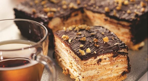 Описание: Вафельный торт ИНГРЕДИЕНТЫжелатин – 15 гбелки яичные – 4 шт.желток яичный – 1 шт.350 г ванильных вафельсахар – 100 г150 г черного шоколада3 ст. л. карамельного топпингамасло сливочное – 100 г200 г несоленой ореховой смесиПОШАГОВЫЙ РЕЦЕПТ ПРИГОТОВЛЕНИЯШаг 1Духовку разогреть до 180°С. Мелко наломать 100 г вафель. Взбить желток, добавить в вафельную крошку; как следует перемешать. Форму для выпечки накрыть листом пергамента, закрыв дно и бортики. Выложить вафельную смесь слоем 0,7 см и поставить в духовку на 8 мин. Дать остыть, не вынимая из формы.Шаг 2Желатин замочить в 30 мл холодной воды, затем слегка подогреть, постоянно размешивая, до полного растворения желатина. Орехи измельчить ножом. Взбить белки с 50 г сахара в пышную пену, добавить карамельный топпинг. Продолжая взбивать, добавить желатин и орехи. Перемешать получившуюся массу и поставить в холодильник на 40 мин.Шаг 3Промазать подложку торта белково-ореховой смесью. Выложить слой вафель. Снова промазать кремом и выложить еще один слой вафель. Продолжать чередовать вафли и крем, пока они не закончатся. Вынуть торт из формы.Шаг 4Растопить на водяной бане шоколад. Масло растереть с оставшимся сахаром, перемешать с шоколадом. Обмазать этой смесью торт и поставить в холодильник на несколько часов.