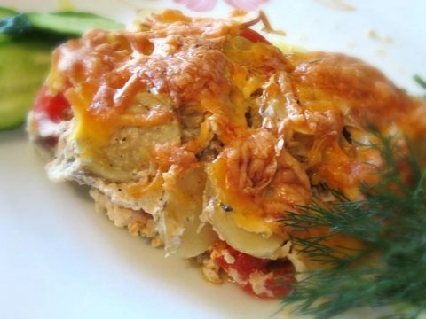 Название: Восхитительная курица с грибами, запечённая под картофельной