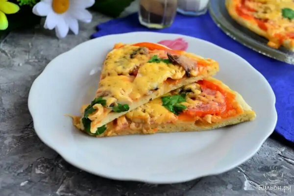 Описание: Когда лень готовить: пицца за 7 минут. Одно из немногих блюд, которое умеет готовить мой сынСегодня я расскажу как приготовить пиццу за 5 минут. Про этот рецепт мне рассказал сын, это одно из немногих блюд, которое он умеет готовить. Главные преимущества такой пиццы - простота, скорость приготовления, вкус (получается как настоящая пицца) и скромный бюджет на приготовление. Конечно, часто этим рецептом пользоваться не будешь, но изредка попробовать можно, особенно когда лень готовить.1. Нам понадобится любая тарелка или миска, пригодная для разогрева в микроволновой печи, можно даже воспользоваться кружкой.Кладём в тарелку муку (6 ложек), разрыхлитель теста (0,5 чайной ложки) и солим по вкусу. Затем добавляем в тарелку молоко (6 столовых ложек) и любое подсолнечное масло (1 столовую ложку).2. Размешиваем получившуюся массу до состояния примерно как сметана . Наносим на тесто слой томатной пасты, можно заменить на кетчуп. На томатную пасту кладём начинку, подойдёт всё что есть в холодильнике - колбаса, сыр, сосиски, мясо, любые овощи и так далее. Я положила слой сыра, ветчину и опять посыпала сыром. Любую начинку посыпаем в конце сыром (если он есть). 3. Помещаем пиццу на 4-5 минут в микроволновую печь. Вкусная пицца готова! С приготовлением справится даже ребёнок.