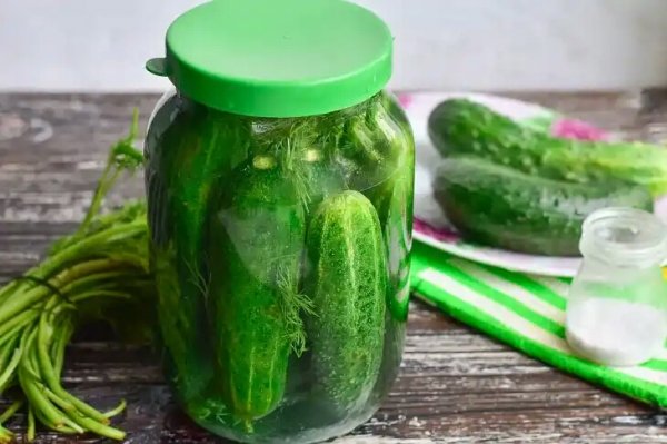 Описание: Огурцы на зиму без закатки быстрый и простой рецептОгурцы без закатки на зиму по вкусу получаются солеными, а не маринованными. Раньше именно так и солили огурчики. Этот рецепт удобен для хозяек по многим причинам. Во-первых, не нужно стерилизовать ничего, во-вторых, закупоривать банки специальным ключом. Именно эти два момента, существенно снижают срок приготовления огурчиков.Подавать готовые огурцы без закатки можно с любыми гарнирами, будь-то гречка или картофель, или же мясными блюдами, будь-то стейк или куриная отбивная. Да и в целом, они всегда на праздничном столе выступают незаменимой закуской.Для их приготовления стоит использовать не крупные по размеру овощи, чтобы они с легкостью помещались в стеклянную банку. Также они должны быть и по толщине небольшими. Кроме перечисленных ниже ингредиентов, можно в банку еще добавить кусочки болгарского перчика, петрушку, корень хрена.Ингредиенты:Огурцы 650 г.Чеснок 1 долька.Укроп 1 пучок.Соль 1,5 ст. л.Как приготовить:1. Очень хорошо вымойте огурцы, затем выложите их в глубокую миску и залейте чистой холодной водой. Оставьте овощи на 60 минут. Эта процедура нужна для того, чтобы готовые огурчики были хрустящими и не горчили.2. В чистую стеклянную литровую банку выложите чеснок и вымытый укроп.3. После этого наполните банку подготовленными огурчиками. Старайтесь их укладывать как можно плотнее друг к другу, но проделывайте данную процедуру аккуратно, чтобы овощи не трескались.4. Теперь сверху выложите еще несколько веточек вымытого укропа. Всыпьте указанное в перечне ингредиентов количество соли.5. Теперь залейте огурцы чистой водой комнатной температуры (в том количестве, сколько поместится в банку).6. Закройте банку капроновой крышкой. Потрусите ее так, чтобы соль вся растворилась.Оставьте огурцы при комнатной температуре на 2 суток. За это время они хорошо промаринуются. После этого обязательно их отнесите в кладовку или погреб, с прохладной температурой. Так процесс брожения будет остановлен.Вот такие огурцы без закатки на зиму вышли!Приятного аппетита!