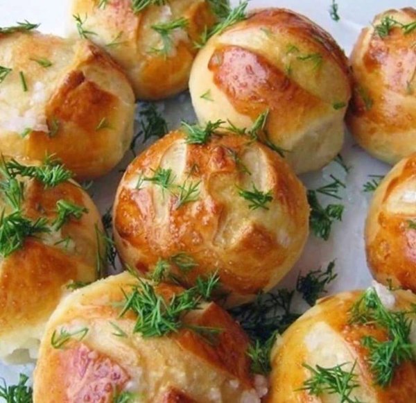 Описание: Нежнейшие пампушки к борщу всего за 20 минут. Ингредиенты: - 1 ст. теплой воды (50-60 градусов) - 1 ст. л. сахара - 3 ст. л. подсолнечного масла - щепотка соли - пакетик сухих дрожжей - 3 ст. муки - чеснок Для заправки: - 1 ч. л. соли - 2 ст.л. подсолнечного масла - 3 зубчика чеснока - 50 мл холодной воды - пол пучка укропа Приготовление: 1. Просейте муку и смешайте в миске воду, масло, сахар, соль, дрожжи и муку и замесите тесто, пока оно не будет отставать от рук. Тесто должно получиться эластичным и средней консистенции. 2. Разогрейте духовку до 180 градусов. 3. Скатайтд шарики небольшого размера. Уложите в смазанную маслом форму на расстоянии примерно 1 см друг от друга, можно плотнее. Поставьте в тзплое место буквально на 5 минут. 4. Тем временем приготовьтд заправку: разотрите чеснок с солью, водой и растительным маслом в ступке или блендере. В полученную смесь добавьте укроп и другую зелень по желанию. Перемешайте. 5. Поместитд заготовки из теста в разогретую духовку и выпекайте до готовности около 15 минут. 6. Достаньте готовые пампушки и сразу же полейте чесночной заправкой. Таким образом они впитают всю жидкость и будут иметь отличный вкус и аромат. Как бы это ни было сложно, дайте пампушкам немного остыть и кушайте на здоровье.