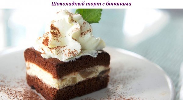Описание: Шоколадный торт с бананамиДесерты и выпечка / Европейская кухняВеликолепное сочетание мягкого шоколадного бисквита, карамелизированных фруктов и воздушного сливочного крема.Ингредиенты для теста:* Мука - 200 г* Разрыхлитель - ⅔ ч. ложки* Сода - ⅔ ч. ложки* Какао-порошок - 3 ст. ложки без горки* Сахар - 200 г* Соль - 1 щепотка* Яйцо - 1 штука* Молоко - 125 мл* Растительное масло - 60 мл* Вода - 125 млИнгредиенты для начинки:* Бананы - 2–3 штуки* Сахар - 2 ст. ложки* Сливки с жирностью 33% - 2 ст. ложки* Сливочное масло - 1 ст. ложкаИнгредиенты для крема:* Крем-сыр - 500 г* Сахарная пудра - 100 г* Сливки с жирностью 33% - 150 млПриготовление:1 - Разогрейте духовку до 170 °С. Круглую форму диаметром 18–20 см застелите пергаментной бумагой.2 - Муку просейте с разрыхлителем, содой и какао, затем смешайте с сахаром и солью.3 - Добавьте к сухим ингредиентам яйцо, тёплое молоко и масло, перемешайте до однородности.4 - Влейте в тесто крутой кипяток, тщательно взбейте всё венчиком.5 - Вылейте тесто в форму. Выпекайте бисквит 40–45 минут до готовности, полностью его остудите, заверните в пищевую плёнку и уберите в холодильник на 5–6 часов.6 - Бананы нарежьте небольшими кусочками. В сковороде, помешивая, растопите сахар.7 - Когда сахар приобретёт золотистый цвет, влейте к нему горячие сливки, хорошо перемешайте.8 - Добавьте к карамели сливочное масло, перемешайте. Когда оно растопится, всыпьте в сковороду бананы.9 - Готовьте фрукты 1–2 минуты. Снимите их с огня и остудите.10 - Срежьте неровности с бисквита, разрежьте его вдоль на 2–3 равных коржа.11 - Соедините сыр с сахарной пудрой и сливками. Взбейте всё миксером в пышную однородную массу.12 - Соберите торт. Корж смажьте толстым слоем крема, сверху выложите бананы. Повторяйте слои, пока не закончатся ингредиенты. Уберите торт на 3–4 часа в холодильник.