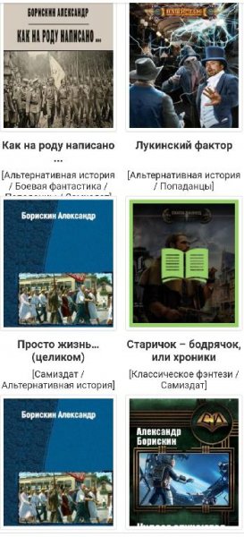 Описание: ФантастикаПопаданцыEVEАльтернативная история 20 книг"Альтернатива" не предполагает достоверного исторического повествования, попаданец может попасть куда и где угодно, а фантастика - она и есть фантастика. "Дед" пишет не плохо, можно просто получить огромное удовольствие читая.Автор пишет в самиздате.