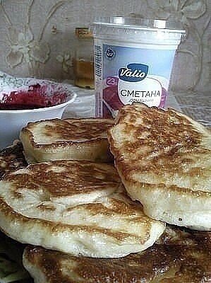 Описание: ОЛАДЬИ ВКУСНЕЙШИЕ.*Оладьи получаются очень пышные и вкусные*Ингредиенты :4 стакана муки2-2,5 ст молока (я всегда беру 2,5 стакана, так как тесто получается густое)3 яйца1 ст ложка растительного масла1 ст ложка сахара (я кладу 2-3, люблю послаще)1 ч ложка соли1 пакетик сухих дрожжей (7-10 г)*ПРИГОТОВЛЕНИЕ :*Дрожжи развести в теплом молоке,добавить просеянную муку, хорошо размешать и поставить в теплое место.Когда тесто поднимется,размешать,положить соль,сахар,масло,яйца, тщательно перемешать и дать подняться вторично.После этого, не мешая тесто,брать его ложкой (рекомендую ложку смачивать каждый раз водой,тесто густое и вязкое) и класть на разогретую с маслом сковороду.*Обжарить оладьи с двух сторон.Толщина готовых оладий должна быть не менее 8 мм (у меня получаются всегда толстенькие).*Подать можно с вареньем, с сахарной пудрой, медом.Я всегда их делаю послаще, поэтому у меня едят их со сметаной.*Приятного аппетита!