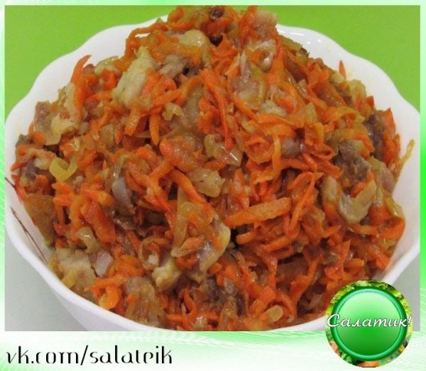 Описание: Салатик от Литовского другаГотовится быстро, просто и главное БЕЗ майонеза- сельдь (малосольная или солёная ) - 200-250 гр,- морковь - 500 гр- лук - 500 гр- масло для жаркиОчищенный лук нарезаем длинной соломкой, морковь натираем на крупной терке.В сковороду наливаем растительное масло, разогреваем и добавляем лук. Периодически помешивая обжариваем до слегка золотистого цвета. Затем добавляем морковь, и также периодически помешивая протушиваем до мягкости.Селедку чистим и нарезаем на небольшие кусочки. К нарезанной рыбе добавляем еще горячие овощи, черный перчик и по необходимости соль, хорошо перемешиваем.Остывший салат накрываем крышкой и отправляем в холодильник на 1-2 часа.