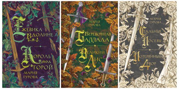 Описание: Гурова Мария. Серия "О Спящем короле" (3 книги)Цикл о Спящем короле – это серия произведений с классическими сюжетами европейской литературы, помещенными в декорации вселенной, напоминающей наш мир в 1920—1940 гг.Понравится фанатам трилогии «Тень и кость» Ли Бардуго и серии книг Джорджа Мартина «Песнь льда и пламени».1. Ежевика в долине. Король под горой (сборник)Дебютный роман Марии Гуровой «Ежевика в долине. Король под горой» из цикла о Спящем короле. Первая часть трилогии, каждая часть из которой состоит из повести-приквела и основного романа.Война – это традиция.В суровую эпоху в королевстве Эскалот взрослеют двое подростков.Тристан Трувер, послушник рыцарского Ордена пальеров, встречает в лесу фею, впервые влюбляется и становится перед выбором между чувствами и долгом.Илия Гавел, сын министра иностранных дел, узнает, что ему предначертано стать проводником древнего короля и преемником нынешнего.Победа достанется государствам, которые возродят национальных героев прошлого в век, когда танки и самолеты сменили мечи и щиты. Вместе Илия и Тристан отправятся на фронт и поиски легендарной усыпальницы. Смогут ли юноши, выросшие в мире без волшебства, разбудить короля под горой?2. Веревочная баллада. Великий Лис (сборник)Прославленный кукольник мастер Барте и его сын Оливье Трувер, талантливый кукловод, гастролируют по стране, терзаемой революцией, и надеются не потерять себя и друг друга. Истории отцов прочно вплетаются в судьбы детей.Ныне, когда Илия Гавел стал королем Эскалота, а Тристан Трувер – первым рыцарем, им приходится думать о наследии, что досталось по праву и останется потомкам. Кнуд продолжает кровавый марш, и в мире не остаётся безопасного места. Кто закончит затянувшуюся войну: рыцарь с даром фей, избранный король, неожиданный союзник из Радожен или Великий Лис?3. Стальные посевы. Потерянный двор (сборник)Пятьсот лет до Великой войны. Эскалот и Горм разрозненны. Здесь, на меже веков и культур, поля засеяли озимые идеи единого королевства. Они залегли в землю доспехами и мечами павших. И оставалось ждать, когда стальные посевы взойдут…Потерянный двор Илии I все больше походит на образ из глубины веков. Феи выходят из невидимых замков, ожившие танки пугают тех, кто не верил в чудо… Слишком много героев настоящих и прошлых войн теперь не знают, как жить в мире, полном тишины.Теги: рыцарские ордена романтическое фэнтези настоящая любовь отважные герои рыцарские романы