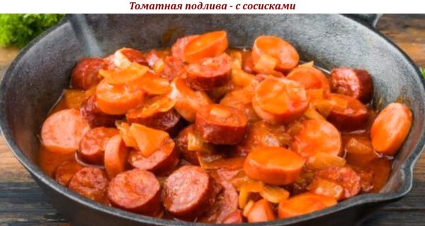 Описание: ♦ Томатная подлива - с сосисками ♦Сосиски в соусе с луком и помидором можно подать к макаронам или картофельному пюре.Ингредиенты:✔ Лук репчатый - 1 штука✔ Помидор - 1 штука✔ Сосиски или копчёные колбаски - 5 штук✔ Растительное масло - 2 ст. ложки✔ Вода - 350 мл✔ Томатная паста - 2 ст. ложки✔ Мука - 40 г✔ Соль - по вкусу✔ Перец чёрный молотый - по вкусуПриготовление (30 мин.):➦ Порубите лук и помидор. Сосиски нарежьте кружками.➦ Разогрейте в сковороде масло. Обжарьте лук до мягкости. Добавьте помидор и тушите на небольшом огне 10 минут.➦ Тщательно размешайте воду, томатную пасту и муку. Влейте в сковороду. Прокипятите несколько минут, чтобы подлива загустела.✦ Если соус получится слишком густым, добавьте ещё воды.➦ Вмешайте в подливу сосиски и нагревайте 5 минут. Посолите и поперчите.