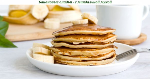 Описание: ___Банановые оладьи - с миндальной мукой___Для теста понадобятся всего четыре ингредиента. Оладьи получаются мягкими и очень ароматными.Ингредиенты:➦ Бананы - 2 шутки➦ Яйца - 4 штуки➦ Миндальная мука - 140 г➦ Разрыхлитель - 1 ч. ложка➦ Растительное масло - по вкусуПриготовление (35 мин.):➤ Разомните бананы в пюре. Смешайте с желтками, мукой и разрыхлителем.✦ Выбирайте очень спелые бананы для этого блюда.➤ Белки взбейте миксером до образования устойчивых пиков. Смешайте с остальными ингредиентами.➤ Оставьте тесто на 5 минут при комнатной температуре.➤ Сковороду слегка смажьте маслом и разогрейте на среднем огне. Вылейте примерно 60 мл теста. Обжарьте под крышкой за 2–3 минуты. Переверните и готовьте под крышкой ещё примерно 2 минуты.➤ Таким же образом приготовьте все панкейки.