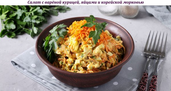 Название: Салат с варёной курицей, яйцами и корейской морковью