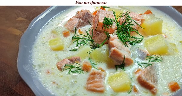 Описание: ___Уха по-фински___Сливки придают этому наваристому и ароматному рыбному супу приятный нежный вкус.Ингредиенты:➦ Красная рыба - 900 г➦ Вода - 1 л➦ Лавровый лист - 2 штуки➦ Чёрный перец горошком - 3 штуки➦ Соль - по вкусу➦ Картофель - 5–6 штук➦ Морковь - 1 штука➦ Лук репчатый - 1 штука➦ Сливки жирностью 20% - 400 мл➦ Укроп - 2–3 веточкиПриготовление (50 мин.):➤ Срежьте с рыбы плавники и хвост. Филе отделите от кожи и костей и нарежьте крупными кубиками.➤ Хвост, плавники, кожу и кости сложите в кастрюлю и залейте водой. Доведите до кипения, снимите пену и варите 15–20 минут.✦ Если рыба с головой, голову тоже можно отправить в бульон, но перед этим нужно удалить жабры, а то бульон потемнеет.➤ Добавьте в бульон лавровый лист, перец горошком и соль по вкусу, варите ещё 5–10 минут. Затем снимите с огня и процедите.➤ Очистите овощи. Лук измельчите, морковь нарежьте тонкими ломтиками, а картофель — крупными кубиками.➤ Доведите процеженный бульон до кипения и добавьте в него овощи. Варите 15 минут или больше, пока овощи не размягчатся.➤ Добавьте в суп нарезанную рыбу и проварите пару минут.➤ Влейте сливки. При подаче посыпьте нарезанным укропом.