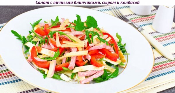 Название: Салат с яичными блинчиками, сыром и колбасой