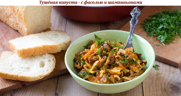 Название: Тушёная капуста - с фасолью и шампиньонами