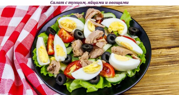 Описание: ___Салат с тунцом, яйцами и овощами___Отличное сочетание сочных помидоров, огурца, рыбы, сытных яиц и пикантных маслин. Для заправки можно взять просто оливковое масло или смешать его с горчицей и лимонным соком.Ингредиенты (на 2 порции):➦ Яйца - 3–4 штуки➦ Помидоры черри - 70–100 г➦ Свежий огурец - 1 штука➦ Маслины без косточек - несколько штук➦ Консервированный тунец - 1 банка➦ Листовой салат - 1 пучок➦ Соль - по вкусу➦ Перец чёрный молотый - по вкусу➦ Оливковое масло - 3–4 ст. ложки➦ Свежевыжатый лимонный сок - 2 ч. ложки➦ Дижонская или другая горчица - 2 ч. ложкиПриготовление (30 мин.):➤ Яйца отварите вкрутую и остудите.➤ Нарежьте яйца и черри четвертинками, огурец — кусочками, маслины — кружочками.➤ Из банки с консервами слейте жидкость. Разомните рыбу вилкой.➤ Выложите подготовленные ингредиенты на листья салата. Слегка посолите и поперчите.➤ Соедините оливковое масло с лимонным соком и горчицей, заправьте салат.
