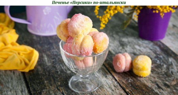 Описание: ***Печенье «Персики» по-итальянски***В Италии тоже готовят привычный нам с детства десерт. Только в качестве начинки используют заварной крем, а окрашивают с помощью яркого ликёра.Ингредиенты для крема:➦ Молоко - 240 мл➦ Ванильный экстракт - ½ ч. ложки➦ Крупные яичные желтки - 3 штуки➦ Сахар - 70 г➦ Мука - 3 ст. ложкиИнгредиенты для теста:➦ Лимон - ½ штуки➦ Мука - 220 г + для посыпки➦ Разрыхлитель - 1 ч. ложка➦ Сахар - 50 г + 1 ст. ложка➦ Соль - 1 щепотка➦ Сливочное масло - 60 г➦ Ванильный экстракт - 1 ч. ложка➦ Крупное яйцо - 1 штука➦ Молоко - 3 ст. ложкиИнгредиенты для украшения:➦ Кампари, персиковый ликёр или что-то другое - ½ стакана➦ Сахар - ¼ стаканаПриготовление (4 ч.):➤ Для начала займитесь кремом, так как ему нужно будет время охладиться. Доведите практически до кипения 180 мл и ваниль. Остудите.➤ Миксером взбейте за несколько минут желтки с сахаром. Не останавливаясь, влейте треть ванильного молока.➤ Всыпьте муку, снова взбейте. Добавьте массу в кастрюлю с остальным ванильным молоком.➤ Помешивая, доведите до кипения на среднем огне. Немного убавьте огонь и медленно влейте оставшиеся 60 мл молока.➤ Переложите крем в чистую ёмкость, немного остудите, накройте плёнкой и уберите в холодильник на 2–3 часа.➤ Разогрейте духовку до 180 °C. Застелите бумагой для выпечки два противня.➤ Натрите цедру лимона. Взбейте миксером муку, разрыхлитель, сахар, соль, размягчённое масло, ваниль и яйцо. Введите молоко.➤ Присыпьте руки мукой и разделите тесто на 16 частей. Сформируйте шарики.➤ Выложите их на противни, оставляя между ними 2–3 см.➤ Выпекайте печенье 15–20 минут. Остудите и острым ножом сделайте на дне печенья углубления.➤ Наполните печенья кремом и соедините по половинке.➤ Окуните каждое печенье в ликёр примерно наполовину и выложите на решётку на 30 секунд. Затем обваляйте в сахаре.✦ В Италии используют ликёр алькермес, но подойдёт и другой яркий красный ликёр. Можно взять окрашенный сироп, добавив немного алкоголя. Если нужен безалкогольный вариант, попробуйте использовать вишнёвый сок — в него тоже можно добавить каплю красителя.➤ Уберите в холодильник на 30–60 минут.