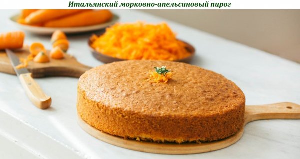Описание: ***Итальянский морковно-апельсиновый пирог***Этот пирог получается нежным, мягким, влажным, с насыщенным цитрусовым вкусом.Ингредиенты:➦ Апельсин - 1 штука➦ Морковь - 250 г➦ Мука пшеничная - 210 г➦ Соль - ¼ ч. ложки➦ Разрыхлитель - 3 ч. ложки➦ Яйца - 3 штуки➦ Сахар - 200 г➦ Растительное масло - 120 мл + для смазывания➦ Миндальная мука - 100 гПриготовление (1 ч.):➤ Мелкой тёркой снимите цедру с апельсина, стараясь не затрагивать белый слой под ней.➤ Из мякоти цитруса выжмите 80 мл сока.➤ Морковь натрите на мелкой тёрке или измельчите в блендере.➤ Пшеничную муку просейте, венчиком соедините с солью и разрыхлителем.➤ Миксером взбейте яйца с сахаром до образования пены. Перемешайте сначала с маслом, соком и цедрой, а после — с морковью.➤ Всыпьте сперва миндальную муку, затем введите пшеничную.➤ Смажьте форму маслом и выложите в неё тесто. Выпекайте примерно 40–45 минут при температуре 180 °С.