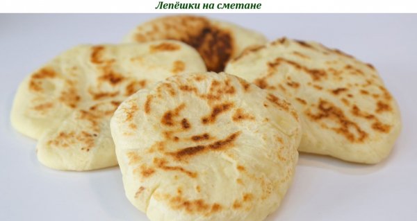 Описание: ***Лепёшки на сметане***Эти лепёшки на сметане готовятся на сковороде. Для них не нужны ни яйца, ни дрожжи.Ингредиенты:➦ Мука - 240 г➦ Разрыхлитель - 2 ч. ложки➦ Соль - ½ ч. ложки➦ Сметана - 240 гПриготовление (40 мин.):➤ Соедините муку, разрыхлитель и соль.➤ Всыпьте треть муки к сметане, перемешайте. Введите ещё треть муки.➤ Помесите 2–3 минуты на столе, добавляя остальную муку.✦ Вам может понадобиться не вся мука.➤ Слепите шар и немного сплющите его. Накройте полотенцем на 15–20 минут.➤ Разделите тесто на 6–8 одинаковых частей. Раскатайте до толщины 3–5 мм.➤ Разогрейте сковороду на огне чуть выше среднего. Обжаривайте лепёшки по 30–60 секунд с каждой стороны.