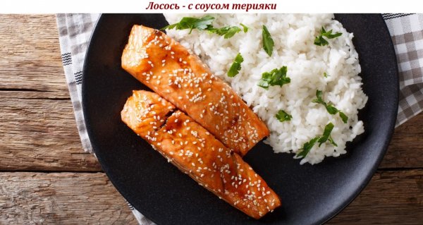 Описание: ***Лосось - с соусом терияки***Такое блюдо можно приготовить в микроволновке. Если добавить к красной рыбе немного овощей, то выйдет полноценный ужин. Ингредиенты (на 2 порции):➦ Чеснок - 1 зубчик➦ Соевый соус - 3 ст. ложки➦ Мёд или коричневый сахар - 1 ст. ложка➦ Рисовый уксус - 1 ст. ложка➦ Кунжутное масло - 1 ст. ложка➦ Молотый имбирь - ¼ ч. ложки➦ Филе лосося без кожи - 2 штуки (примерно по 120 г)➦ Соль - по вкусу➦ Молотый чёрный перец - по вкусу➦ Кунжут - по вкусуПриготовление (20 мин.):➤ Пропустите чеснок через пресс. В небольшой кастрюле смешайте чеснок, соевый соус, мёд, уксус, масло и имбирь.➤ Доведите до кипения, помешивая, и проварите несколько минут.✦ Соус можно сделать в микроволновке. Для этого добавьте ½ чайной ложки кукурузного крахмала и подогревайте примерно 1 минуту до загустения.➤ Положите каждое филе на лист пергамента. Посыпьте солью и перцем, полейте соусом, добавьте кунжут.✦ Вокруг рыбы можно положить немного овощей, например брусочки болгарского перца или стручки гороха.➤ Заверните края пергамента, чтобы получились полностью закрытые свёртки. Не прижимайте бумагу близко к рыбе. Положите на блюдо.➤ Готовьте рыбу по очереди на высокой мощности примерно 5 минут или до готовности.✦ Точное время зависит от толщины филе. Если нужно, добавляйте ещё по 30 секунд приготовления. Подавайте на стол с гарниром - отварной рис, жареный картофель. тушёная капуста или любой другой на ваше усмотрение.