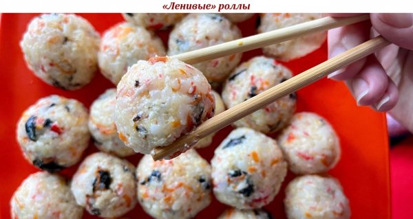 Описание: ***«Ленивые» роллы***Приготовить «ленивые» роллы получится намного быстрее, чем доедет доставка при заказе через интернет. С ингредиентами можно смело экспериментировать.Ингредиенты (на 2 порции):➦ Рис - 80–100 г➦ Яблочный уксус - 2 ч. ложки➦ Сахар - 1 ч. ложка➦ Соль - по вкусу➦ Слабосолёный лосось - 100 г➦ Свежий огурец среднего размера - 1 штука➦ Авокадо - ½ штуки➦ Нори - 1 лист➦ Крем-сыр - 50 г➦ Майонез - 1 ст. ложкаПриготовление (40 мин.):➤ Отварите рис и остудите. Вам понадобится около 200 г варёного риса.➤ Соедините уксус, сахар и соль так, чтобы всё растворилось. Влейте к рису и перемешайте.➤ Мелко нарежьте рыбу, огурец и авокадо. Нори нарежьте ножницами.➤ Соедините нарезанные ингредиенты с рисом, сыром и майонезом.➤ Слепите из массы шарики. Подавайте с соевым соусом.