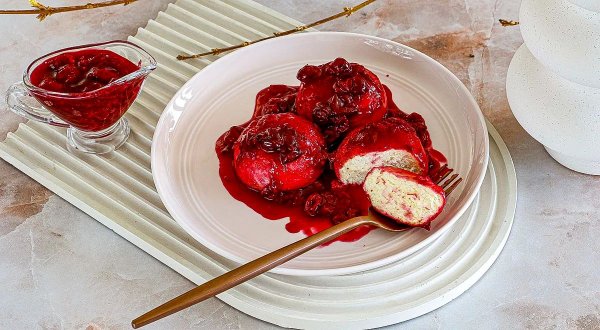 Название: Замороженные сырники в вишневом соусе, готовленные в духовке