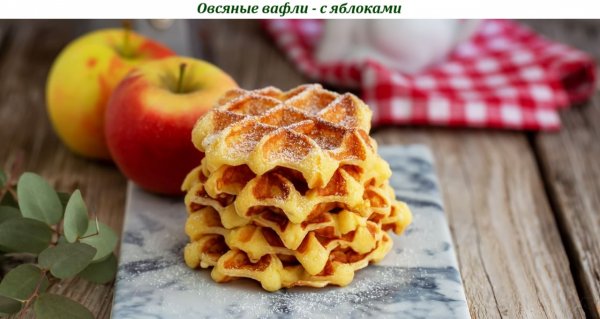 Описание: ***Овсяные вафли - с яблоками***Фрукты добавляются в тесто в виде пюре, а также кусочками в уже готовое тесто. Измельчённая овсянка заменяет муку.Ингредиенты (на 3 порции):___Кокосовое или сливочное масло - 60 г___Средние яблоки - 2 штуки___Крупные яйца - 2 штуки___Овсяные хлопья - 140 г___Молоко - 180 мл___Коричневый сахар - 1 ст. ложка___Разрыхлитель - 1½ ч. ложки___Молотая корица - ½–1 ч. ложка___Соль - 1 щепоткаПриготовление (30 мин.):1․ Растопите и остудите масло. Нарежьте яблоки небольшими кусочками.2․ Половину яблок выложите в блендер. Добавьте все остальные ингредиенты и взбейте до однородности.3․ Вмешайте в тесто остальные яблоки.✦ Можете добавить меньше нарезанных фруктов, ориентируйтесь на свой вкус.4․ Готовьте вафли в разогретой вафельнице по несколько минут до золотистого цвета.✦ У вас получится примерно 11 вафель.