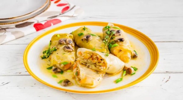Описание: Постные голубцы с грибами и перловкой понравятся не только тем, кто строго соблюдает православные традиции, или вегетарианцам, но и самым убежденным мясоедам. Поэтому непременно рассчитывайте количество порций и на последних. Постные голубцы имеют просто головокружительный грибной аромат, ведь в состав начинки входят самые что ни на есть благородные представители лесного царства — боровики! Сложность: среднеПорций: 6Готовка: 2 чДля голубцов:✦ перловая крупа – 200 г✦ питьевая вода – 700 мл✦ белокочанная капуста – 1 кочан весом 700-800 г✦ репчатый лук – 1 шт.✦ морковь – 1 шт.✦ корень сельдерея – 100 г✦ белые грибы – 400 г✦ шампиньоны – 150 г✦ растительное масло – 2 ст. л.✦ соль, перец – по вкусуДля соуса:✦ белые грибы – 150 г✦ шампиньоны – 100 г✦ растительное масло – 2 ст. л.✦ мука – 1,5 ст. л.✦ питьевая вода – 400 мл✦ зеленый лук – 3 стебля✦ тимьян – 1 веточка✦ соль, перец – по вкусу1. Для фарша постных голубцов подготовьте перловку. Крупу сложите в сито и промывайте горячей проточной водой до тех пор, пока она не станет прозрачной.2. Промытую перловку переложите в ковшик и залейте водой. Поставьте на огонь и быстро доведите до кипения. Варите на слабом огне 20 минут, затем откиньте на сито.3. Подготовьте капустные листья для постных голубцов. Для этого из кочана аккуратно вырежьте кочерыжку с помощью длинного тонкого ножа. Поместите капусту в пароварку и готовьте 20 минут. Дайте остыть. Отделите 12–16 листьев, утолщенную часть отбейте.4. Луковицу очистите и мелко порубите. Морковь и корень сельдерея вымойте, очистите и нарежьте маленькими кубиками. Белые грибы и шампиньоны нарежьте так же.5. Овощи и грибы перемешайте с перловкой и выложите в емкость для пароварки. Готовьте 20 мин. Приправьте растительным маслом. Посолите и поперчите по вкусу.6. Листья капусты разложите на столе, на середину каждого поместите по 1–2 ст. л. начинки и сверните конвертиком. Уложите постные голубцы в пароварку и готовьте 15–20 минут.7. Приготовьте соус для постных голубцов с перловкой. Для этого все грибы нарежьте маленькими кубиками и слегка подрумяньте на растительном масле. Всыпьте муку и перемешайте. Влейте воду и доведите до кипения. Посолите, поперчите и, помешивая, варите 10 минут.8. Зеленый лук и веточку тимьяна вымойте и обсушите. Лук нарежьте маленькими колечками. С веточки тимьяна оборвите листочки, затем вместе с зеленым луком добавьте в соус. Постные голубцы с грибами и перловкой подайте на стол с соусом.КСТАТИПостные голубцы с грибами и перловкой придутся по вкусу и сторонникам правильного питания, ведь и капуста, и начинка, и сами постные голубцы готовятся в пароварке.ХОЗЯЙКЕ НА ЗАМЕТКУПостные голубцы с грибами и перловкой можно также приготовить классическим образом — то есть сначала обжарить на масле, а затем тушить в соусе до готовности. Количество муки в этом случае сократите до 1 ч. л