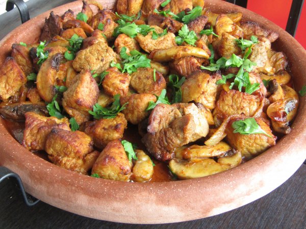Описание: Катино мезе — типичное болгарское блюдо, которое обычно подают в качестве закуски. Он состоит из небольших кусочков свинины и телятины, обжаренных в масле с луком, перцем и луком. Затем эти ингредиенты запекаются или тушатся в глиняном горшочке с грибами и белым вином, а все блюдо щедро украшается петрушкой перед подачей на стол.Подготовка: 20 минГотовка: 60 минВсего: 80 минПорций: 4✦ свинина - 500 г (без костей)✦ шампиньоны - 200 г предварительно бланшированные или консервированные✦ оливковое масло - 100 мл✦ репчатый лук - 2 луковицы✦ петрушка - 1/2 пучка✦ лимоны - 1 шт.✦ соль - по вкусу✦ мука - 2 - 3 ст.л.✦ жгучий перец - по вкусу✦ паприка - 1 ст.л.✦ черный перец - по вкусуКусок свинины (желательно окорок) смазать солью и смальцем и запекать в духовке с небольшим количеством воды, чтобы покрыть дно противня. Выпекать, пока вода полностью не испарится, а соус на дне противня не загустеет (до коричневого цвета).Снять запеченное мясо с противня, снова налить воду на противень и вернуть в духовку, чтобы соус растворился и получился коричневый бульон.Приготовить соус: обжарить на сковороде в небольшом количестве растительного масла 2-3 ст. л. муки и паприки. Добавить бульон из кастрюли и дать ему закипеть, чтобы мука сварилась.Если бульона недостаточно, а соус получился очень густым, добавить еще воды (но соус не должен быть слишком густым, потому что через некоторое время он еще больше загустеет).Приправить солью и, снять с огня, добавить лимонный сок (по вкусу), дольку лимона с кожурой для аромата (лимон оставить в соусе на десять минут, а затем вынуть) и черный перец.Запеченное мясо нарезать кубиками и выложить в сотейник. К мясу добавить нарезанные бланшированные грибы (можно консервированные из банки).Полить приготовленным соусом и, не помешивая, довести до кипения. Когда закуска готова разложить по тарелкам, положить в каждую порцию по несколько жгучих перцев (свежих или печеных) и веточку петрушки для украшения.